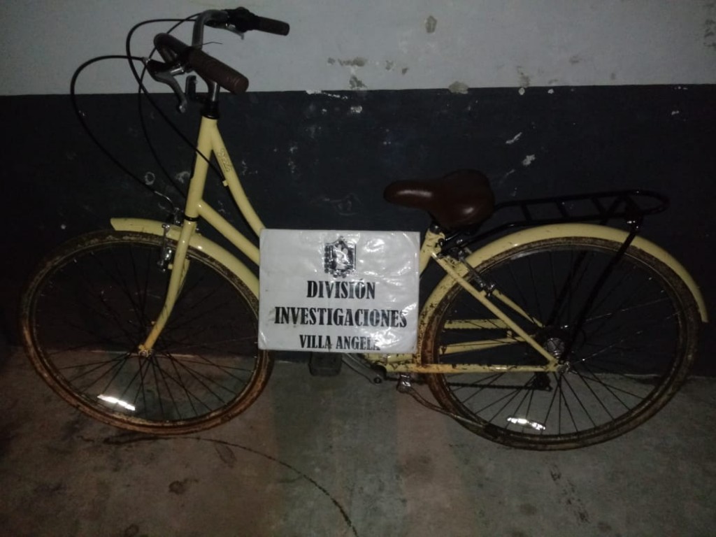 Al salir a horas 18:50 constata la faltante de la misma. Al dirigirse a la Comisaría 1ra a radicar la denuncia, toma conocimiento  el Personal de la Division Investigaciones abocándose de inmediato a la investigación logrando casi de inmediato el recupero de la bicicleta sustraida, en Barrio Tupac Amaru en poder del menor S. L. M. alias PELIGRO, de 12 años domiciliado en dicho barrio.