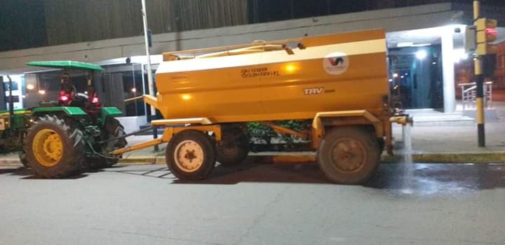 Asimismo, se realizan trabajos de desinfección en las calles del centro de la ciudad donde hay circulación de personas debido a los lugares que se encuentran abiertos por pagos. “El tanque regador realiza la desinfección con agua lavandina hasta el viernes 22 de mayo, fecha en la que terminarán los cobros. La tarea de prevención la lleva adelante la secretaría de desarrollo social quienes se encuentran en los bancos realizando el servicio de control para evitar contagios”, aseguró el funcionario.