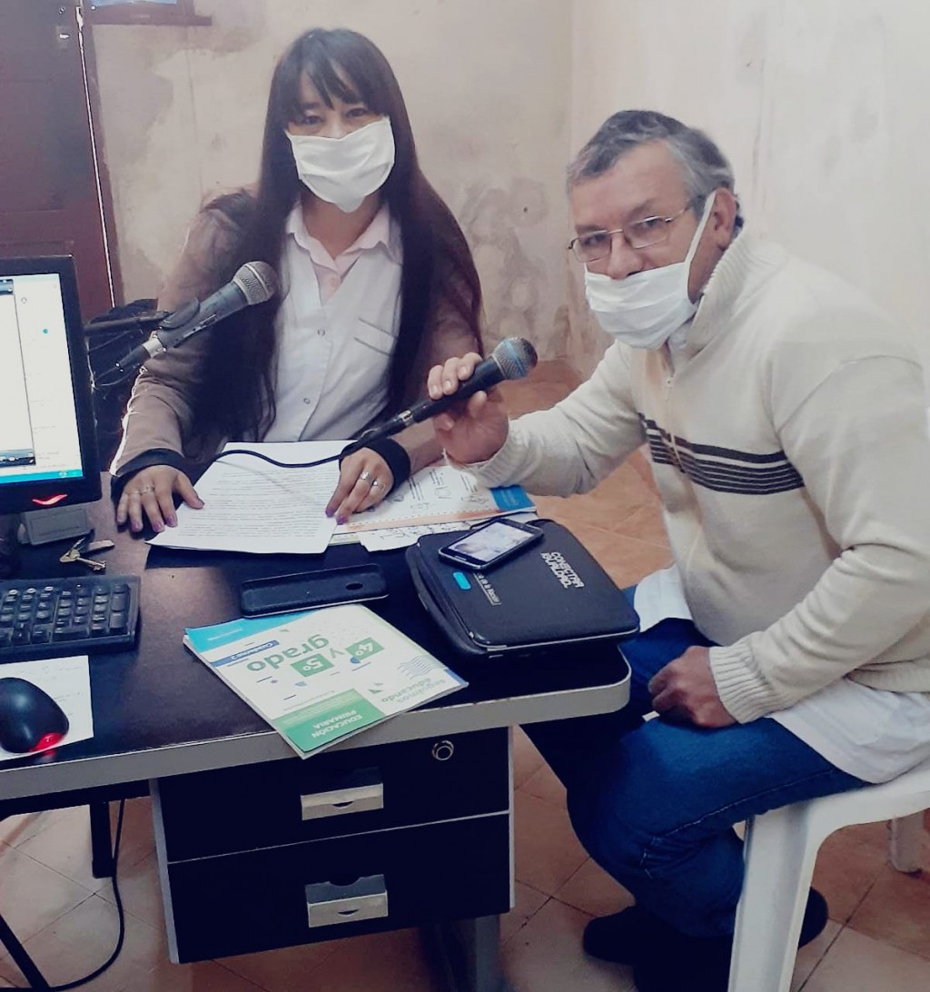 También pasa que tenemos niños que viven en la zona rural, entonces no sabíamos cómo llegar a ellos, de manera que yo siendo de Villa Berthet decidí venir a Enrique Urien y pasar la cuarentena aquí, vivo en una habitación que me dio la escuela, empezamos a llevar los cuadernillos en moto hacia los campos pero no teníamos comunicación cuando los padres querían preguntar algo, entonces surgió la idea de Supervisión de implementar programas orientativos por radio, donde la Intendente de esta localidad nos ofreció espacio en la Radio Municipal, que también fue todo un desafío, entonces hablamos con el director, tenemos docentes que viven en otras localidades así que tramitamos el permiso para que vengan una vez por semana para manejarnos así, pero en realidad ya estamos haciendo programas por radio todos los días y empezó a funcionar, es como si estamos dando clases con los alumnos e inclusive con los padres.
