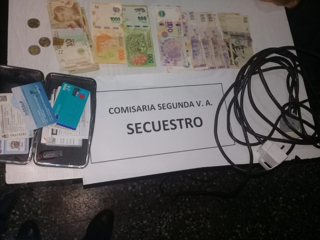 Constituida la prevención se entrevistan con la propietaria del lugar S. M. de 51 años, quien manifestó de que momentos antes sufrieron en el interior de su domicilio la sustracción de una billetera de mano femenina, color negra, la cual contenía dinero en efectivo ($2240,00), documentaciones varias y un alargue color negro, procediéndose entrevistar  con el empleado que se hallaba en el lugar identificado como D. M. A. de 32 años, quien habría arrojado a una zona lindante los elementos sustraídos, procediéndose al formal secuestros estos.