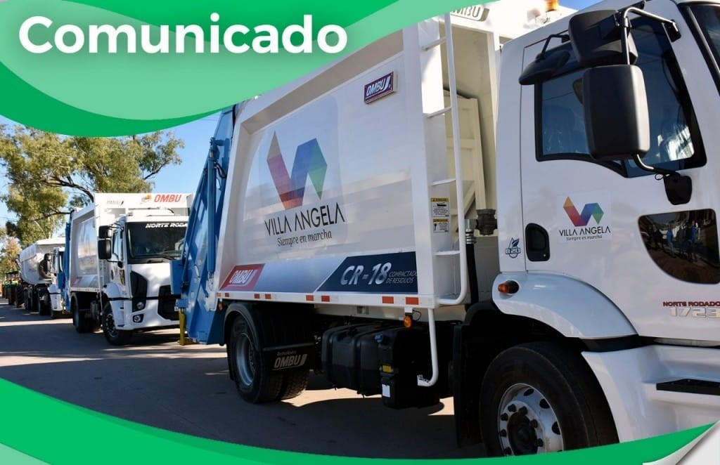 La Municipalidad de Villa Ángela, a través de la secretaría de servicios públicos informa a los vecinos de la ciudad, que debido al desperfecto técnico sufrido en dos camiones durante la semana pasada, sumado a la ruptura de otro vehículo en el día de ayer, el servicio de recolección de residuos estuvo funcionando de forma discontinua. En este sentido, durante la semana pasada, solo se contaba con dos equipos para hacer los 9 recorridos diarios que se llevan a cabo habitualmente.