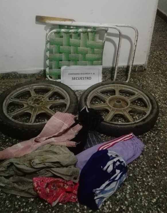 Se realizó un rastrillaje en la zona hallando en la maleza 2 Ruedas de motocicletas, elementos reconocidos por el denunciante como el bien sustraído.