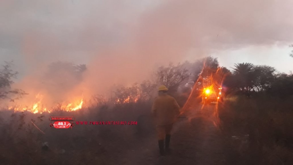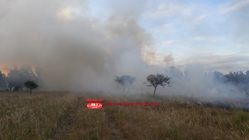 Partió al lugar dotaciones de bomberos donde arribados al lugar, se constató del incendio de un pastizal en un predio de 10 hectáreas aproximadamente, en el que el personal concurrente procedió a trabajar en la tarea de extinción mediante arrojo de agua con mochilas hidrantes y utilización de hisopos.