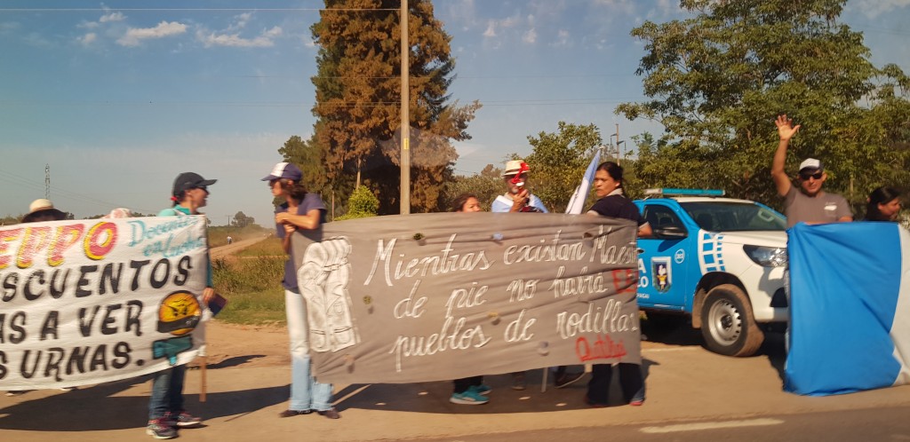Jueves 11 de Abril - por la mañana los docentes se dieron lugar a manifestarse en las distintas localidades a la vera de la ruta..
