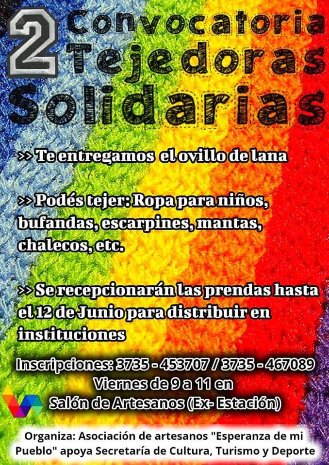 “…ya lo habíamos hecho el año pasado a esta convocatoria de tejedoras solidarias, y este año porque no nos podemos juntar lo hacíamos en una jornada, una jornada artística también, pasamos toda la tarde con las tejedoras y hacíamos las prendas en una tarde, y así, juntábamos y entregábamos a instituciones.