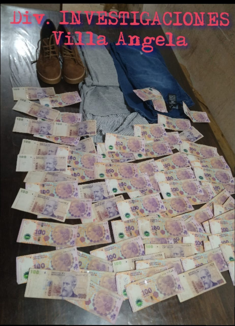 Se hicieron presentes en el lugar, el Jefe de Comisar�a Primera con personal, como asi personal de la Divisi�n de Investigaciones Complejas Interior Villa Angela, quienes abocados a tareas espec�ficas y a trav�s averiguaciones realizadas, se logra establecer al presunto autor del hecho, que ser�a la misma empleada M. D. S., quien se hab�a auto provocado dicha mordedura y tendr�a en su domicilio el dinero sustra�do.