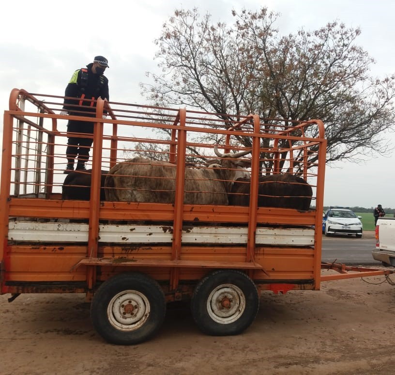 Ayer, alrededor de la hora 18:10, al momento de estar realizando control vehicular sobre Ruta Provincial N° 6 KM. 32 San Bernardo, efectivos de la Div. Transito Urbano y Patrulla Vial, procedieron al secuestro de tres anímales, categoría vaca, sin marcas visibles.