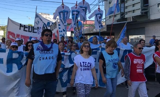 Ante las declaraciones de la Ministra de Educación de la Provincia del Chaco Daniela Torrente, respecto de que no se pagará la cláusula gatillo comprometida por el propio Gobernador Capitanich -en el seno mismo de la Comisión de Política Salarial y Condiciones de Trabajo-, y a requerimiento del Frente Gremial Docente, las organizaciones sindicales que conforman el espacio del mismo rechazan de plano las afirmaciones de la titular de la cartera educativa, toda vez que el primer mandatario ha garantizado el pago de la cláusula reclamada, asumiendo inclusive en la última reunión de la Comisión mencionada, la deuda que a aquella fecha comenzaba a acumularse y en concepto de acreencias por parte de cada docente chaqueño.