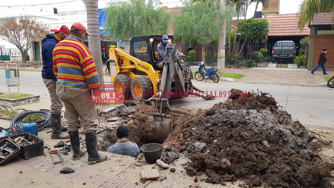 “…en este momento comenzamos ya con lo que tiene que ver con las tareas previas a lo que va a ser un trabajo de reparación en la calle 25 de mayo y San Luís, donde estaba un local de electrodomésticos, donde básicamente tenemos que reemplazar la cañería domiciliaria cloacal, que lo que pasó es que salió de servicio por el paso de los años, asique estamos empezando con las tareas previas que es el corte de la vereda, seguramente mañana el retiro de los escombros, para poder hacer el trabajo.
