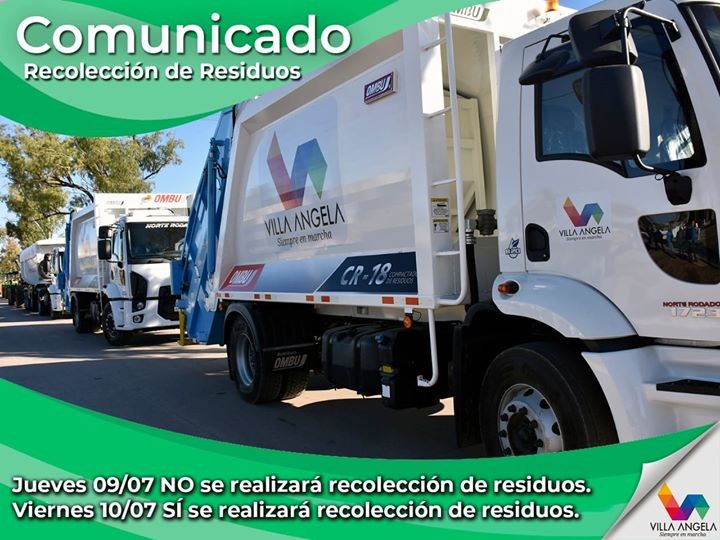 Villa Ángela: POR EL FERIADO, ESTE JUEVES 9 NO HABRÁ SERVICIO DE RECOLECCIÓN-