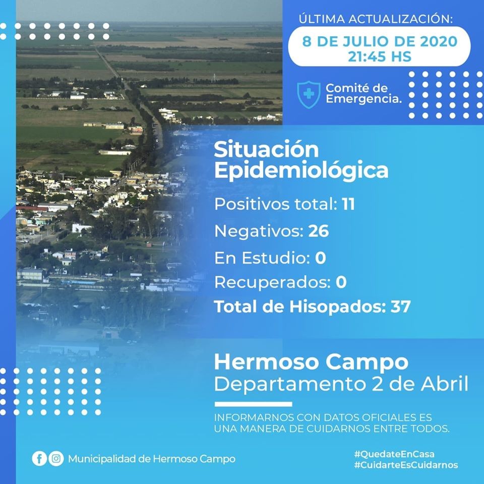 En la jornada de hoy en horas de la noche lo informaron mediante la Red Social Oficial del Municipio de Hermoso Campo en Facebook.