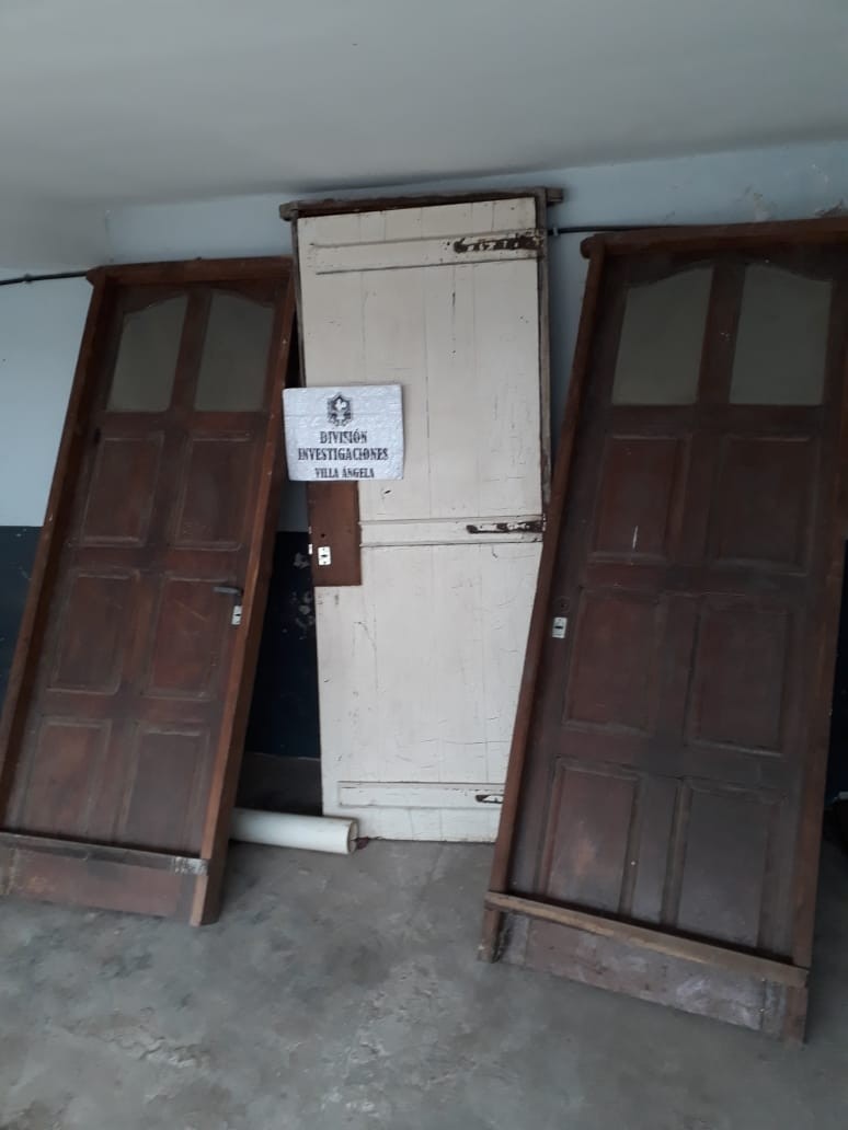 Relacionado al hecho se logró el recupero de dos puertas de madera de algarrobo con detalles de vidrio y una de madera de algarrobo pintada color blanco, todas con su respectivo marco, elementos que fueron incautados en un domicilio del Barrio Pueblo Viejo de esta ciudad, las cuales fueron recibidas por la comisión policial bajo el acta respectiva y conforme la orden del fiscal actuante fueron restituidas a su damnificado.