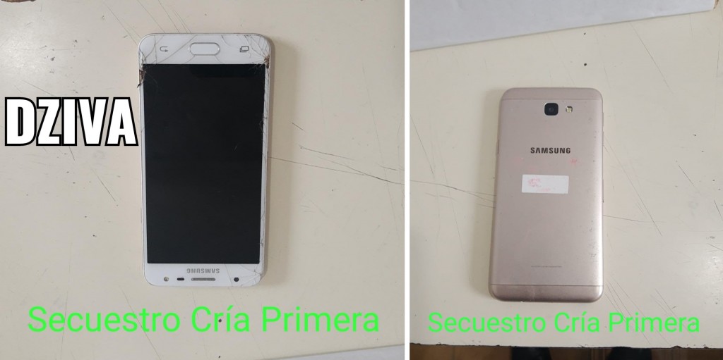 Personal policial tras tareas investigativas establece qué teléfono celular se encontraría en posesión del ciudadano T. B. E. de de 15 años, constituidos en el lugar el personal se entrevista con  R. D. R. padrastro del menor, quién hace entrega  voluntaria frente a su domicilio, del Teléfono Celular.