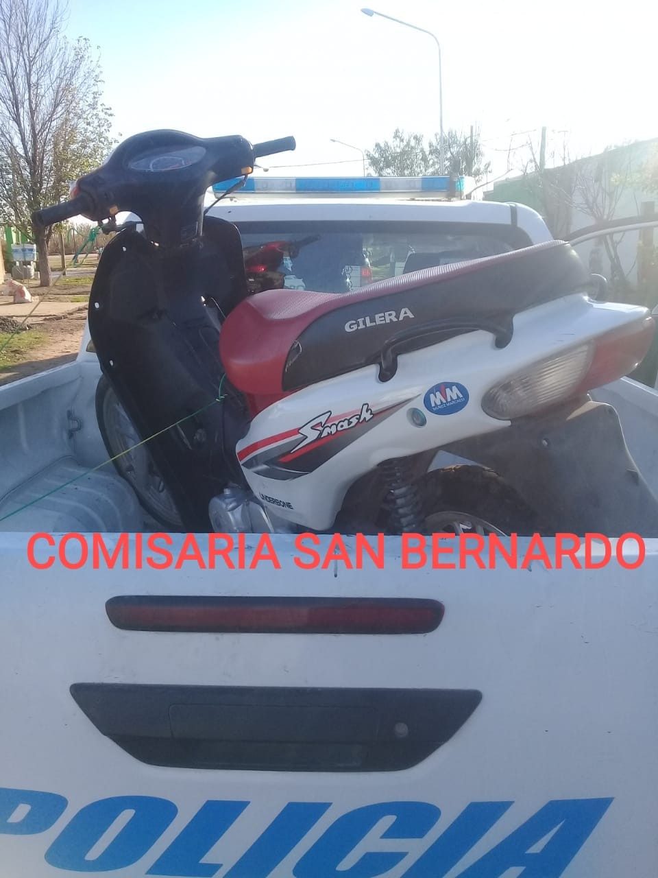 Se procedió al secuestro y traslado a Comisaría de San Bernardo. Se procedió a la aprehensión de Ratita y el rodado fue restituido a la damnificada. Se procura aprehensión de Kitu.