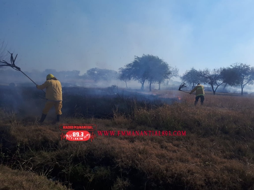 Se dirigió al lugar una dotación de bomberos en Autobomba A-4 donde una vez llegado al lugar, se constató de un incendio de pastizal en un predio de 100 mts2.