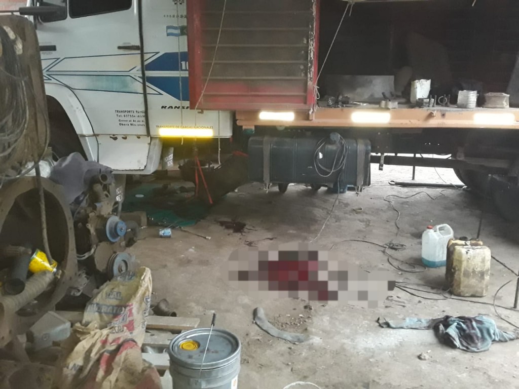 Constituidos el personal policial a dicho Nosocomio se identificó a quien en vida fuera D. J. S. de 44, quien momentos antes se encontraba trabajando en su taller mecánico sito por calle Santiago del Estero de esta localidad, junto a dos personas ayudantes, debajo de un camión marca MERCEDES BENZ, modelo 1633, cabina color blanca y carrocería roja, perteneciente a un particular, ocasión que en forma accidental se “zafó” una linga denominada “catraca”, que sostenía la caja de cambios de gran peso, ubicada en la parte inferior del camión, al momento de estar realizando trabajos en ese sector, ocasionando su brusca caída sobre el cuerpo de esta persona.