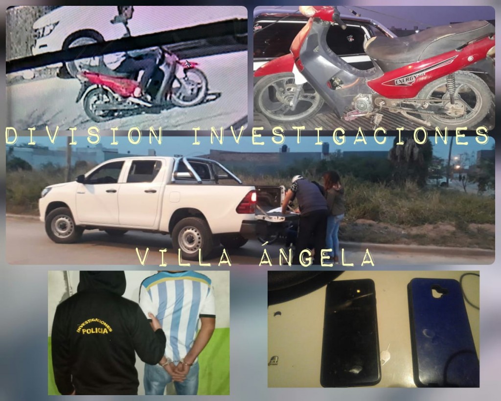 Consecuente con el hecho denunciado, el personal de la DIVISIÓN DE INVESTIGACIONES COMPLEJAS INTERIOR VILLA ÁNGELA, inició tareas de inteligencia, logrando recabar material fílmico de cámaras de seguridad de las cercanías de la escena del hecho, estableciéndose que el malviviente se movilizaba en una Motocicleta 110 c.c. con carenados color rojo.