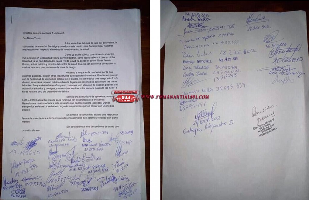 En la mañana de hoy #RadioMananatial89.3 en comunicación con Eddy Gamarra, Concejal de la localidad de Samuhu, dialogó acerca de la situación que están viviendo en el centro de salud, ya que días atrás presentaron una nota a la Dirección de Zona Sanitaria 1, denunciando las irregularidades del Médico Omar Fermin Kumm, solicitando que cumple la carga horaria que debe o el nombramiento de un médico que cubra sus ausencias.
