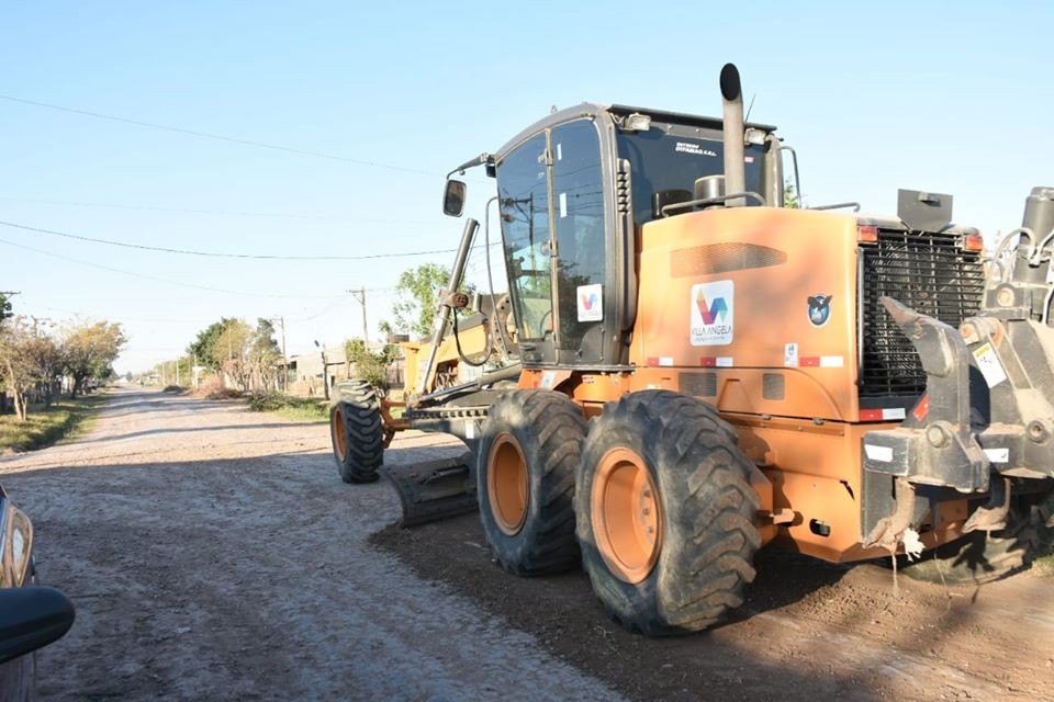 ? La motoniveladora se encuentra desarrollando perfilado en la calles Jujuy, Entre Ríos, Misiones desde España hasta Monteagudo.