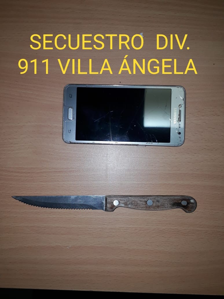Seguidamente se procedió al secuestro en legal forma del aparato celular marca Samsung J2 prime color gris y un cuchillo tipo serrucho con tres remaches, cabo de madera, marca TRENTO.