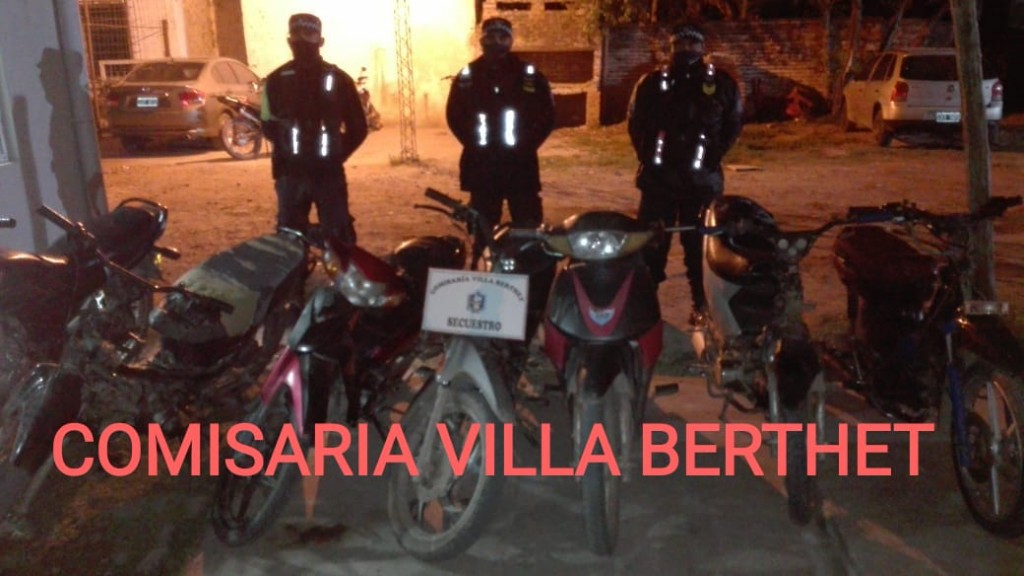 En la jornada de ayer se IMPLEMENTÓ EL OPERATIVO DE PREVENCION GENERAL en forma conjunta con Personal y Móviles de la División de Tránsito Urbano y Patrulla Vial Villa Ángela, Departamento de Seguridad Rural Villa Ángela y la dotación disponible de la Comisaría local, en el casco urbano de Villa Berthet, consistente en el control motovehicular, finalizando a horas 22.30, con el siguiente resultado; el secuestro de ocho (08) motocicletas, por diferentes Artículos Del Código de Faltas de la Provincia, a disposición del Juzgado de Paz local.
