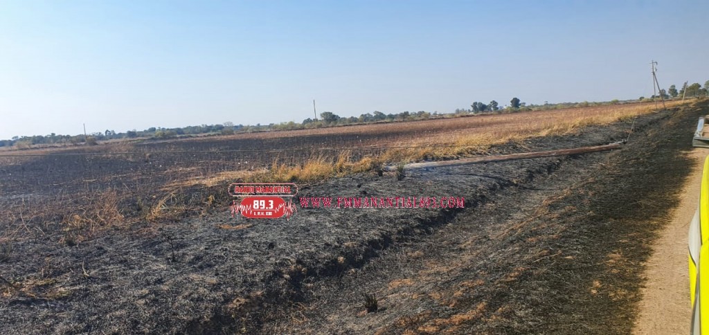 R. P. informó al N° 100 de la División de Bomberos, que en Colonia Juan José Paso, Lote N° 125, se producía un incendio de pastizal afectando a postes del tendido de la red eléctrica.