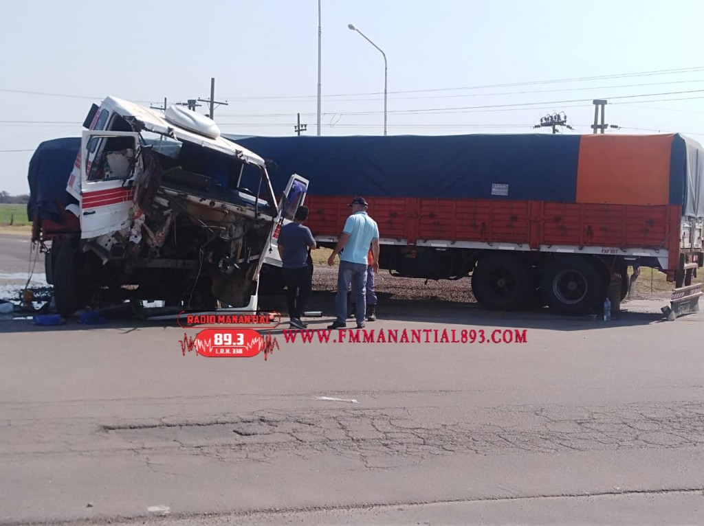 En la siesta de hoy en horas cercanas al mediodía ocurrió un Accidente de tránsito entre dos Camiones marca SCANIA, Transporte Morel, blanco, transportando piedras, conducido por R. M. de 36 años, procedente de Mercedes provincia de Corriente, quien producto del siniestro resultó con politraumatísmos y una lesión sangrante en el cuero cabelludo, el mismo venía por Ruta N°6 de Este a oeste, el rodado sufrió daños en la parte frontal.