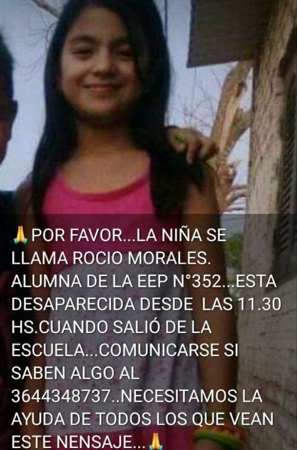 Se trata de Rocío Morales, a quien buscan intensamente desde la mañana de hoy cuando salió de la escuela. Hasta el momento no se sabe nada de ella y su familia pide colaboración a la ciudadanía para encontrarla.