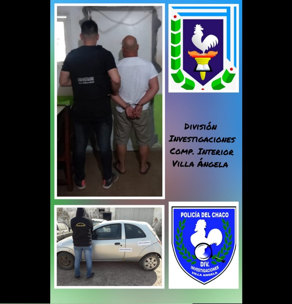 Solicitado colaboración de la División de Investigaciones Complejas Interior Villa Ángela, quienes comienzan la investigación comenzando por el reporte extraído de Pagina Dirección Nacional de Registro del Automotor y Créditos Prendarios (DNRPA), del dominio del vehículo, que corresponde a un vehículo marca FORD, modelo 238 – KA, tipo Sedan 3 Puertas, con radicación de Legajo en el Registro Seccional de esta ciudad, bajo la titularidad de A. D. A. con domicilio en la localidad de Coronel Du Graty.