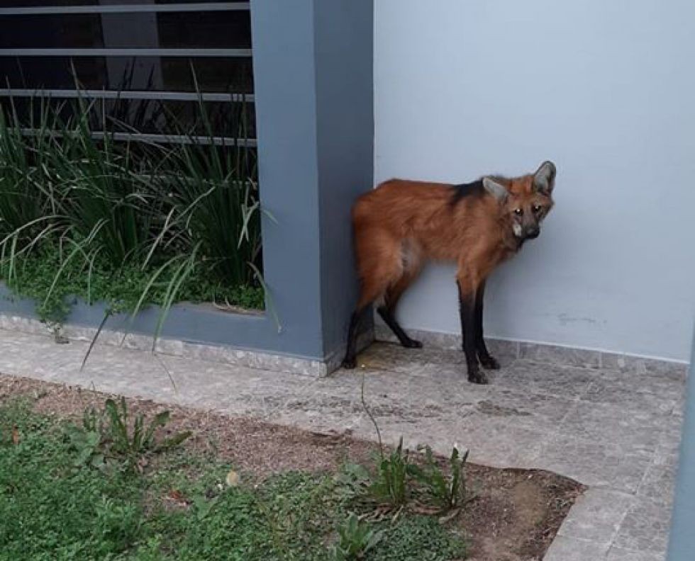 Asustado por los incendios, apareció un Aguará Guazú en el acceso de Las Breñas
