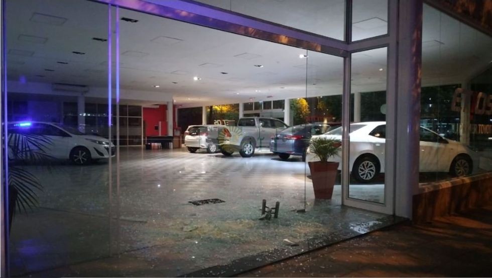 El robo se registró esta madrugada del salón de exposición de la concesionaria ubicada en avenida Sarmiento al 1890. Se trata de una Toyota Hilux cero kilómetro sin patentar que tenía puesta la llave de encendido. Los malvivientes violentaron la puerta de blindex y se llevaron el rodado.