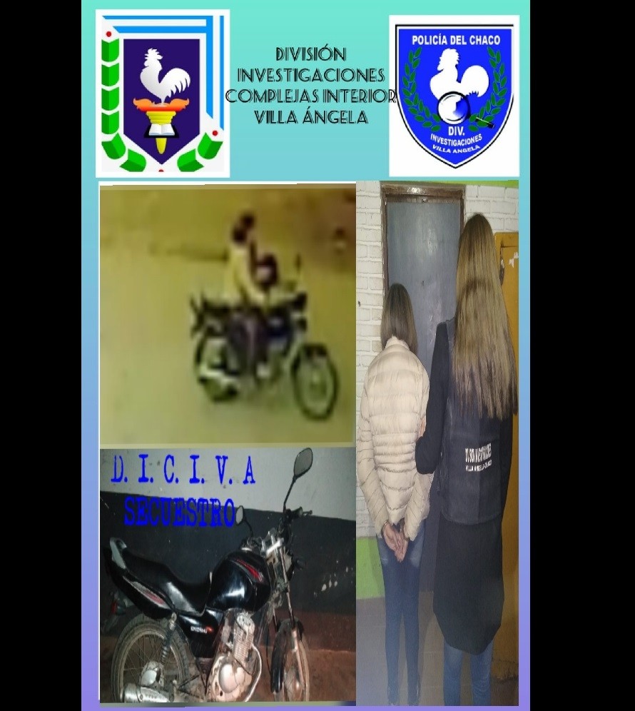 Fue solicitada la colaboración del personal de la División de Investigaciones Complejas Interior Villa Ángela, quienes asumen la intervención en el hecho, recabándose filmaciones de cámaras de seguridad en cercanías al lugar del hecho, y se establece la hora exacta del siniestro siando a las 17:49, visualizándose además que, luego del accidente, el restante participe de sexo femenino se da a la fuga en una Motocicleta 125 c.c. color negra.