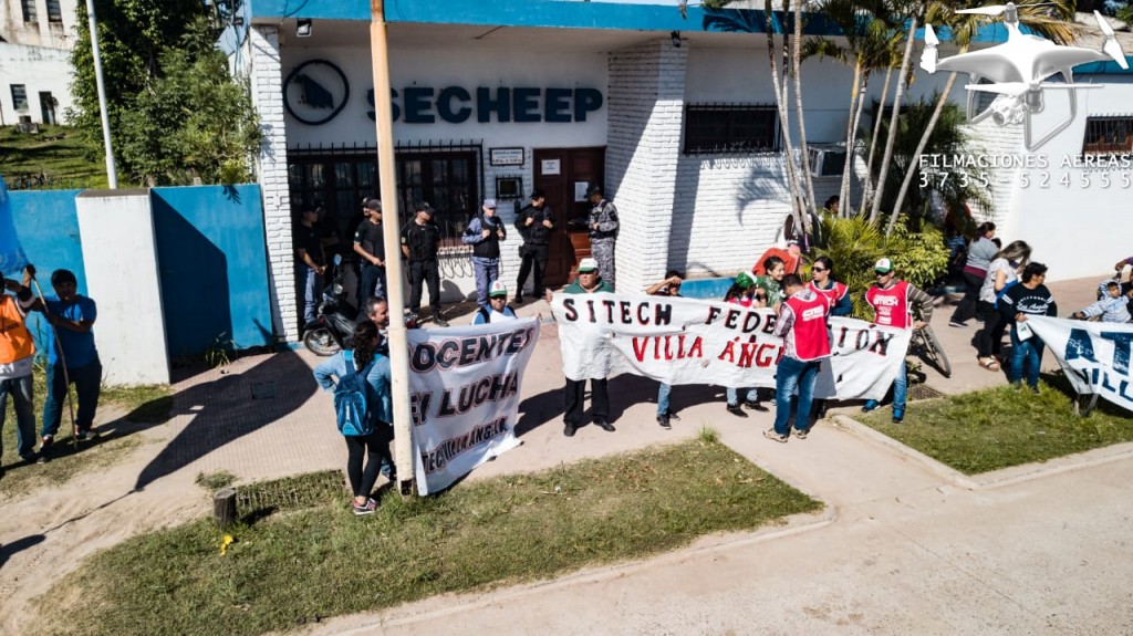 En la marcha Docentes, movimientos Sociales y autoconvocados se reunieron la Plaza central de la ciudad de Villa Angela, a las 8:30 hs. para luego dirigirse a las Oficinas de SECHEEP en esta ciudad, en reclamo a los aumentos de las tarifas.