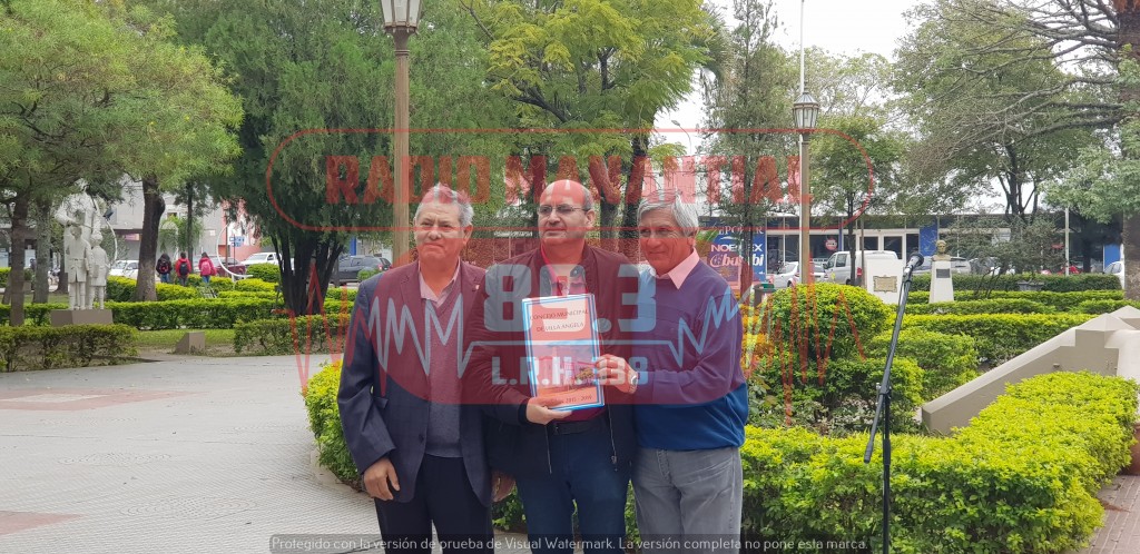 En el acto que se llevó a cabo en la plaza central de la ciudad de Villa Ángela, el Concejal estuvo, presente entregando el reconocimiento a periodistas de la ciudad.