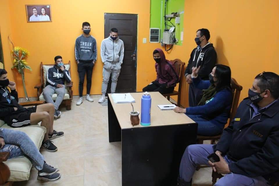 Liliana Pascua en reunion llevada adelante con el Comisario de la localidad y con jóvenes de la comuna para dar tratamiento a la habilitación de la actividad deportiva.