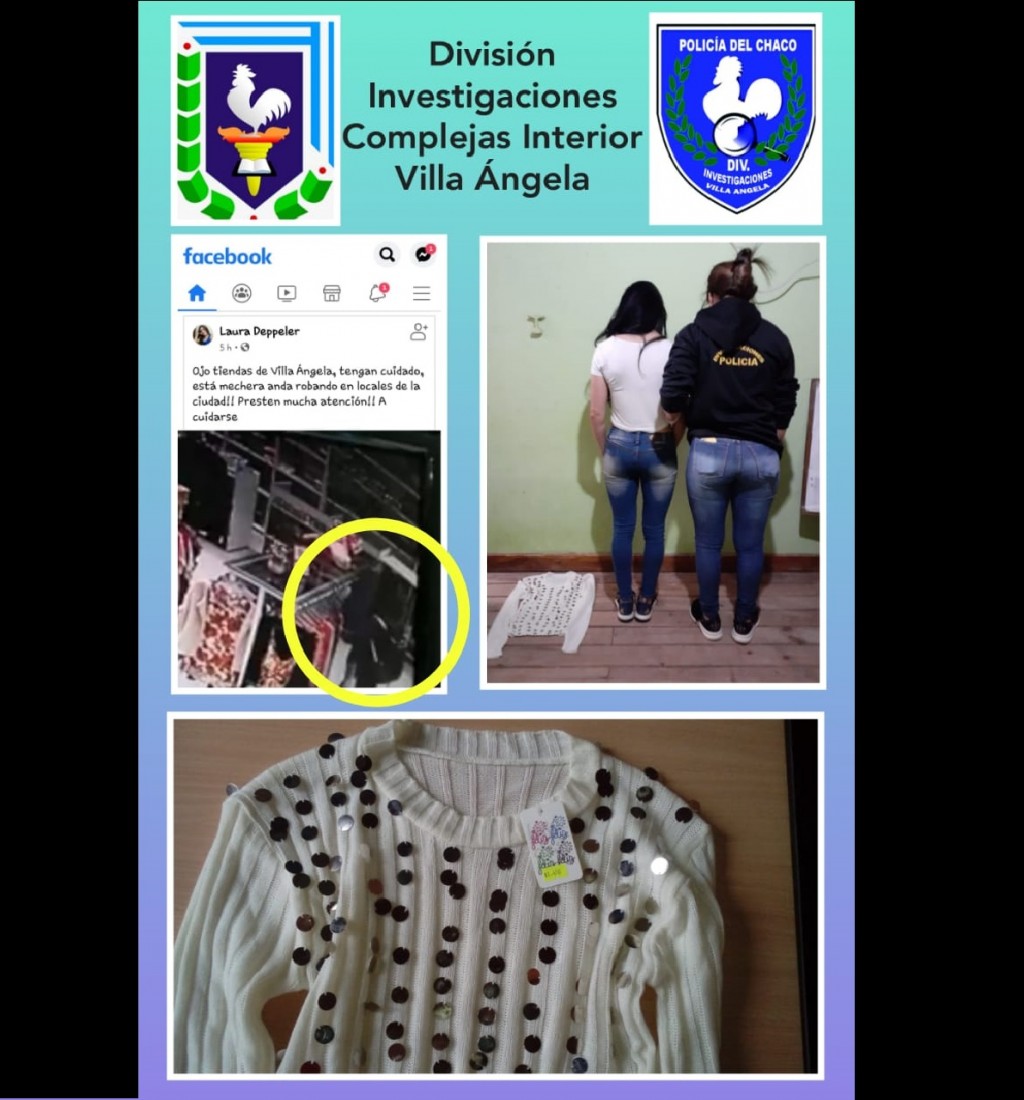 Ayer se tomó conocimiento mediante la circulación viral en redes sociales de una publicación”, el cual contenía siguiente texto “Ojo tiendas de Villa Ángela, tengan cuidado, esta mechera anda robando en locales de la ciudad!!! ¡Presten mucha atención!! A cuidarse”, acompañada de una imagen de una femenina desconocida en el interior de un local comercial de rubro venta de indumentaria.