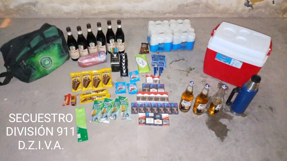 Abandonan un bolsa con chocolates, cervezas, preservativos, cigarrillos y otros elementos robados.