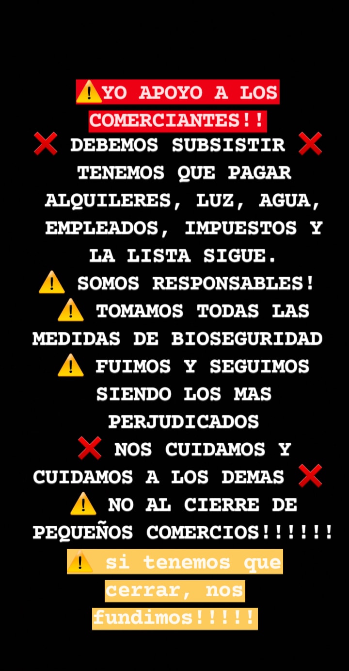 Los comerciantes se mostraron disconformes con esta decisión de los expertos que forman parte del comité de emergencia, que expresaron el cierre obligatorio de 10 días de los comercios no escenciales, para tratar de revertir la situación del ascenso de el virus COVID-19.