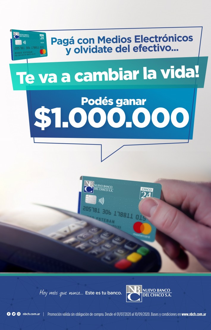 Todos los clientes de la entidad bancaria chaqueña tienen chances de participar en este sorteo si utilizaron la tarjeta de débito para compras y el home banking web. Quienes resulten ganadores del sorteo final serán informados a través de los canales oficiales de Nuevo Banco del Chaco: página web y redes sociales. Para recibir el premio de esta promoción no se requiere realizar ningún tipo de pago, gestión ni operación en cajeros automáticos ni home banking.