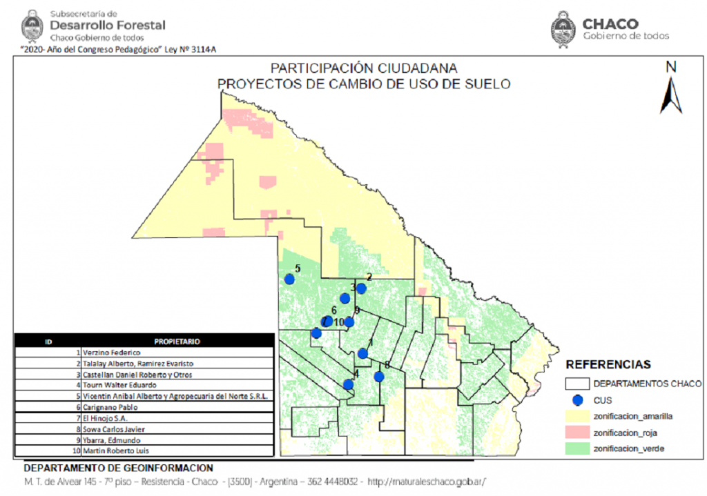 Este martes 15 de septiembre iniciará la consulta pública de proyectos de cambio de uso de suelo que permitirá incrementar la capacidad de producción agrícola de la provincia. "Nueve proyectos por un total de 2.789 hectáreas localizados en los departamentos Almirante Brown, Independencia y General Belgrano (todos ubicados en zona verde del ordenamiento territorial), son los expedientes que se pondrán en consulta en este proceso de participación”, aseguró a esta Agencia FOCO el subsecretario de Desarrollo Forestal del Ministerio de Producción, Industria y Empleo del Gobierno Provincial, Luciano Olivares.