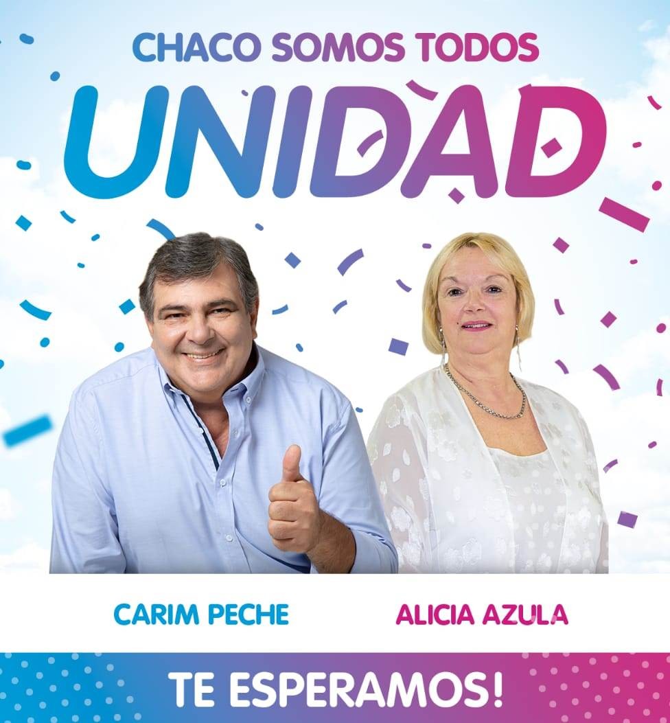 Este martes 11 de junio a la hora 10:30 en la Peña Nativa Martín Fierro ubicada en José Hernández y Avenida 9 de Julio de Resistencia, se realizará la presentación de la fórmula de unidad del Frente “Chaco Somos Todos”, que impulsa al dos veces intendente de Saénz Peña, Carim Peche, como candidato a Gobernador, y a la actual intendente de Barranqueras Alicia Azula a ocupar la Vicegobernación.