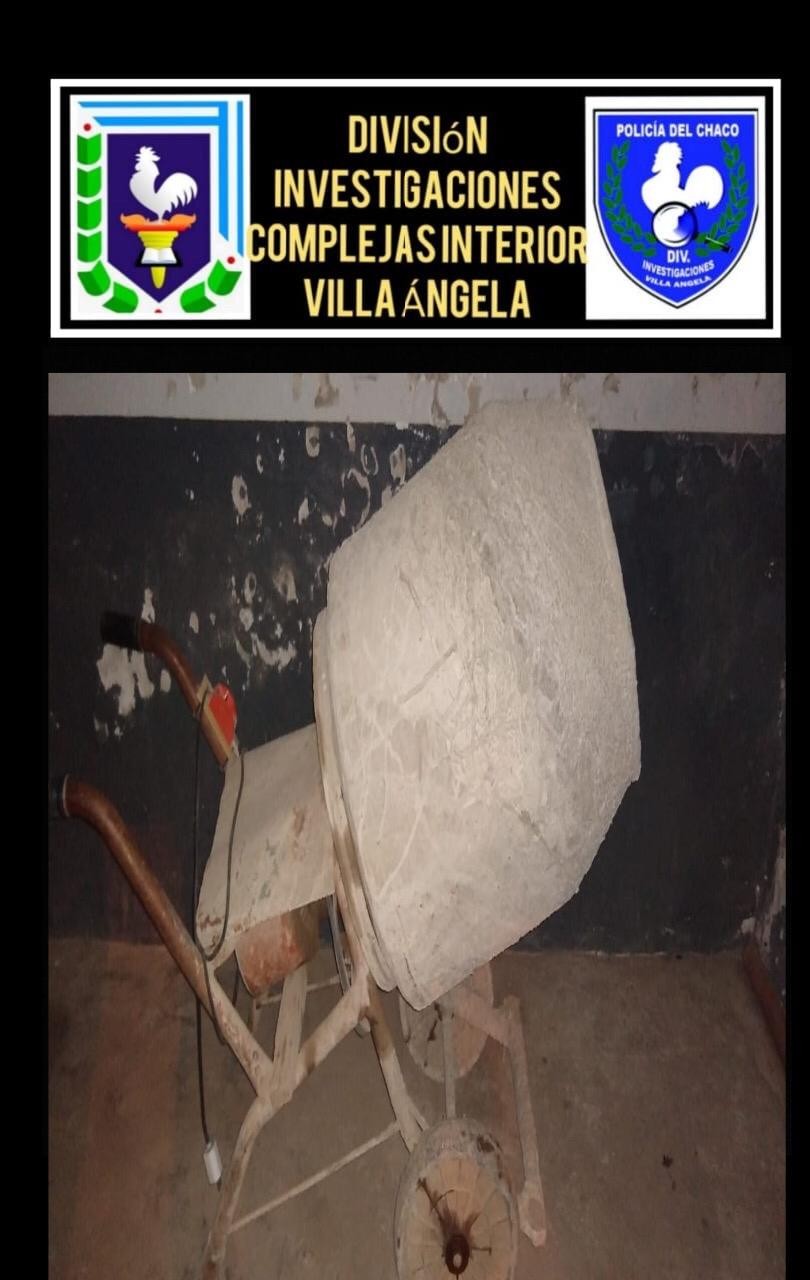 Se procedi� al formal SECUESTRO de (1) Hormigonera sin marca visible con motor de 12 HP. Conforme lo ordenado por la Fiscal de Investigaci�n Turno, el bien secuestrado fue restituido a la cooperativa de la Iglesia Cat�lica damnificada.