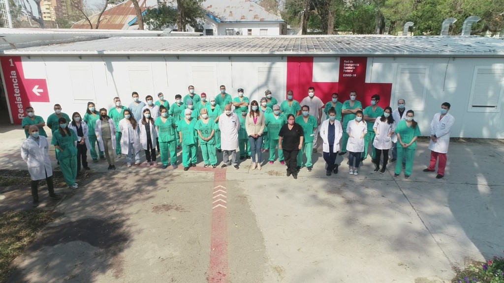 La ministra de Salud Paola Benítez se reunió con todo el equipo que compone la Unidad Covid-19 del Hospital Perrando, que desde el 14 agosto funciona a pleno en hospital modular. “El objetivo de este diálogo fue reconocer la ardua tarea que llevan a cabo los trabajadores, escuchar sus demandas y avanzar sobre mejoras”, señaló la ministra, quien remarcó que si bien los seis meses que lleva la provincia gestionando la pandemia fueron muy difíciles, está convencida de que fortalecieron a todo el sistema: “Nos unió y nos hizo más fuertes”, subrayó.