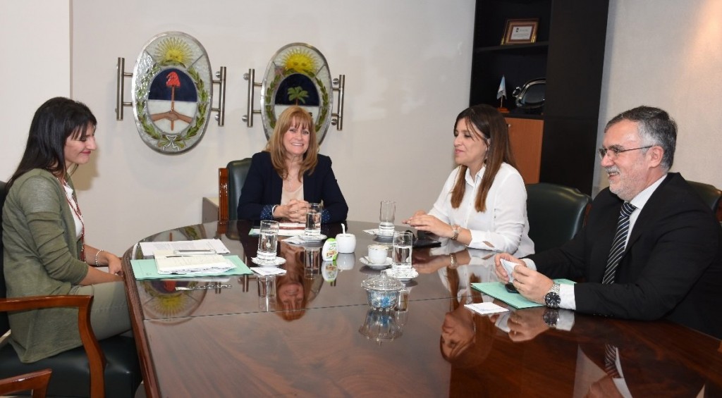 La presidenta del Superior Tribunal de Justicia, Emilia Valle, mantuvo una reunión en el salón de acuerdos junto a la ministra de Gobierno del Chaco, Jessica Ayala, el camarista Víctor Del Río y la titular del Instituto de Estudios Comparados en Ciencias Sociales y Penales (INECIP), Aldana Romano.