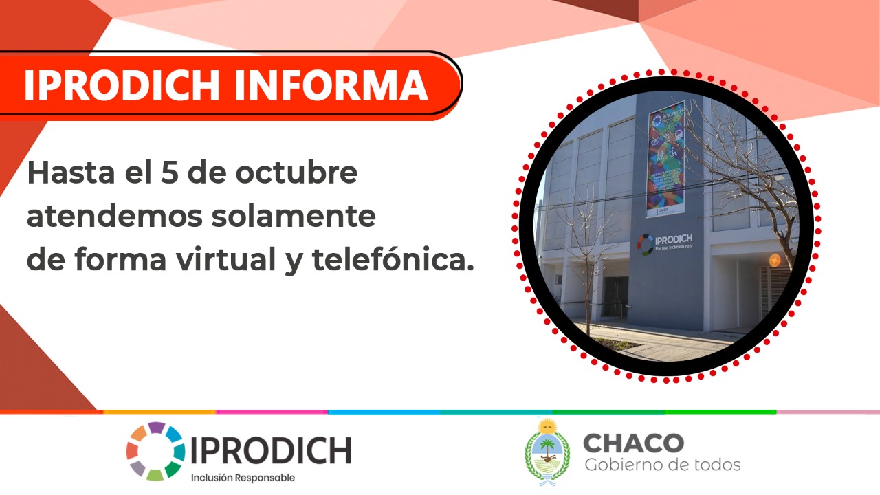 El Instituto Provincial para la Inclusión de las Personas con Discapacidad del Chaco (IPRODICH) informa a la población que por prevención durante esta semana la atención será únicamente telefónica y virtual.