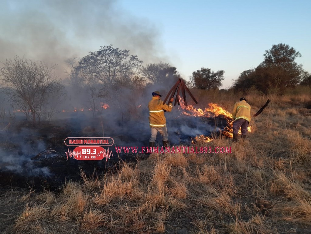 Se dirigió al lugar una dotación de incendios en autobomba Forestal-4008 a cargo del Sargento de Policía Jorge Daniel A. TORRES con personal a su cargo donde una vez allí se constató que, efectivamente se producía un incendio declarado sobre pasto seco y pajonal, por lo cual el personal concurrente se abocó a trabajar en la tarea de extinción del proceso combustivo mediante arrojo de agua con mochilas hidrantes y utilización de hisopos bate fuego, finalizando las tareas de extinción, verificando el control total del siniestro.