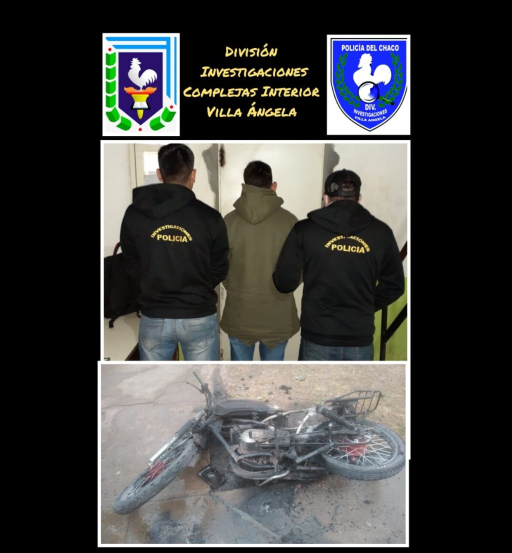 Solicitada la colaboración a la División de Investigaciones Complejas Interior Villa Ángela, se inició averiguaciones tendientes al esclarecimiento del supuesto ilícito, estableciendo a través de indagación vecinal que el sindicado R. situó la motocicleta en el lugar, luego de ello cortó el conducto de nafta del rodado y con el mismo liquido combustible roció el motovehículo para luego prenderlo fuego.