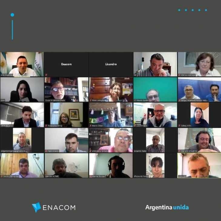 Participaron de la reunión virtual el jefe de Gabinete de ENACOM, Ariel Martínez; el director nacional de Atención a Usuarios y Delegaciones, Javier Forlenza; el director nacional de Fomento y Desarrollo, Pablo Urquiza; la subdirectora de Medios Comunitarios y Pluralidad de Voces (FOMECA), María Sucarrat; la subdirectora de Proyectos Especiales, Natalia Vinelli; el subdirector de Universalización de Servicios TIC, Mariano Fernández Ameghino, y el delegado provincial del Ente, Oscar Cabrera.