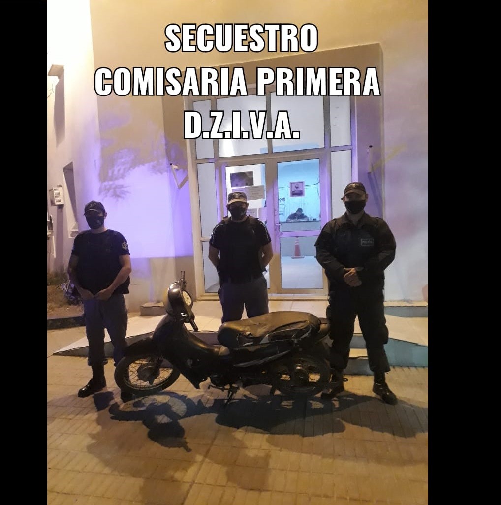 En la noche del 26, siendo las 22:00 hs. aproximadamente la prevención en virtud de estar realizando recorridos en móvil, por la jurisdicción, constata entre las malezas de un baldío a la vera del camino, (01) motocicleta, marca Motomel, color negro, sin dominio, sin encendido arranque, en regular estado de conservación.