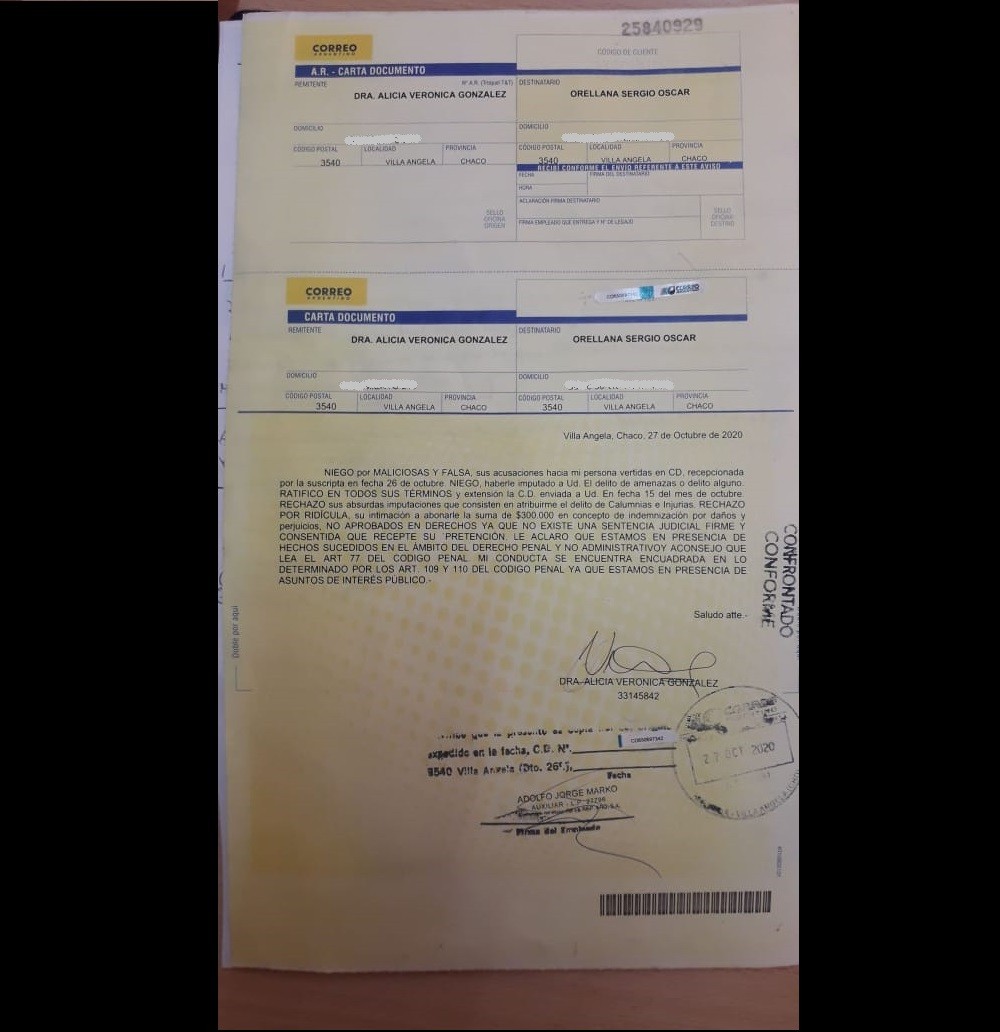 Villa Ángela: LA DRA. VERÓNICA GONZÁLEZ ACERCA DE LA CARTA DOCUMENTO DEL LIC. ORELLANA | "EL DELITO DE CALUMNIAS E INJURIAS NO SE CONFIGURA PORQUE SE TRATA DE UN CASO DE INTERÉS PÚBLICO "